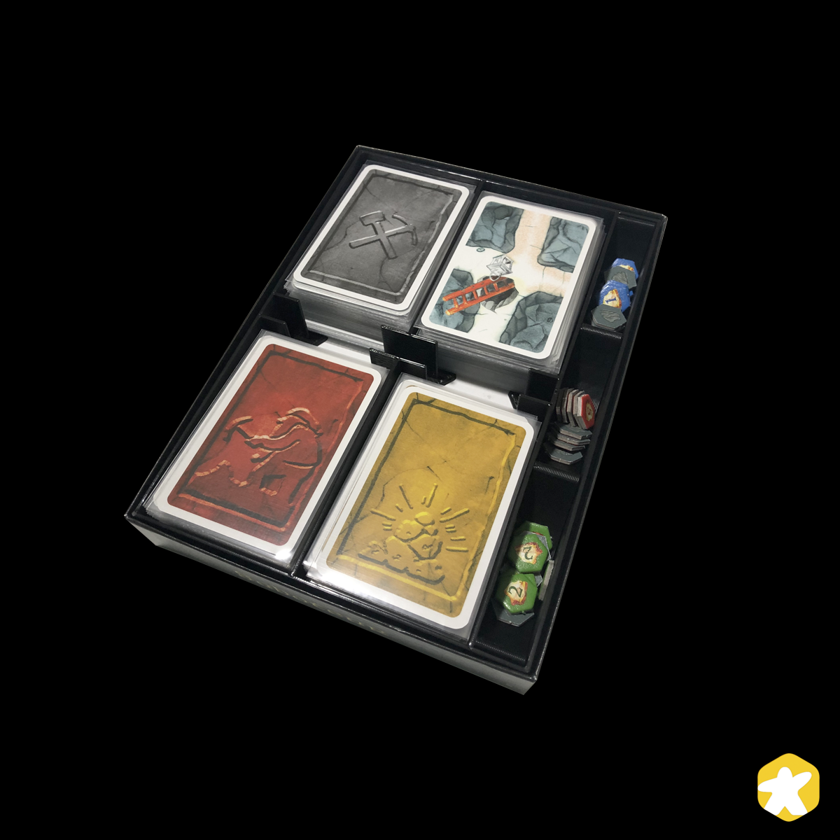 Perfect insert to store the game Saboteur II. Convenient and quick to organize the different tokens and separate the decks of cards. Of course, he accepts cards with or without card guards.